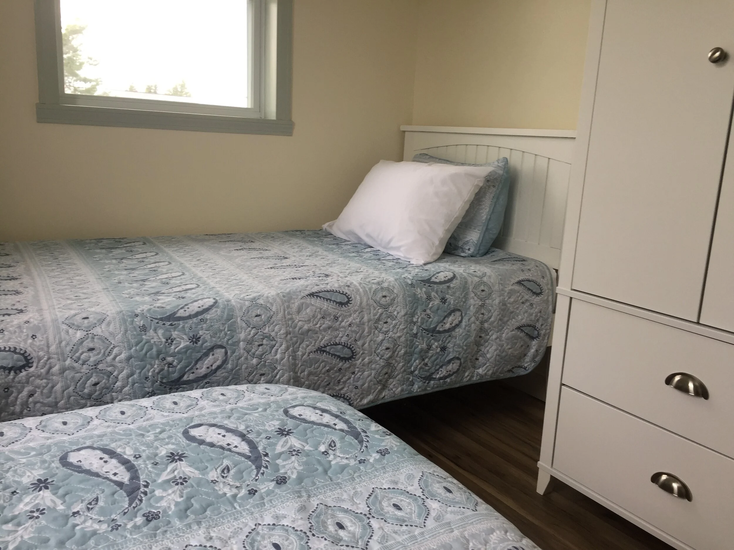 Completely renovated in 2019, it includes new kitchen cabinets, countertops and appliances. All new heating system, UV water treatment system, exterior door and a new deck. Comfortable furnishings include a queen bed in one bedroom and two single beds in the other bedroom. The furniture was selected by us for its comfort and durability.